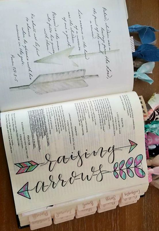 Psalm 127: The Raising Arrows logo at the top of this page, and the Bible Journaling pictured on the right, were both drawn by one of our creative teens!
